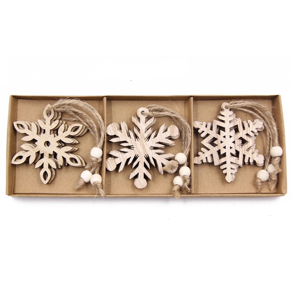 Material: Madeira | Quantidade: 12 Ornamentos em cada Kit (4 Ornamentos de Cada Modelo)